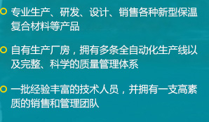 公司是一家瞄準國際、國內市場,集科、工、貿于一體的綜合性公司,擁有各類先進的設備100余臺(套),公司自主研發(fā)了新型保溫材料及彩鋼復合保溫板材連續(xù)生產工藝,建成了機上一次成型彩鋼復合保溫板材的生產線...